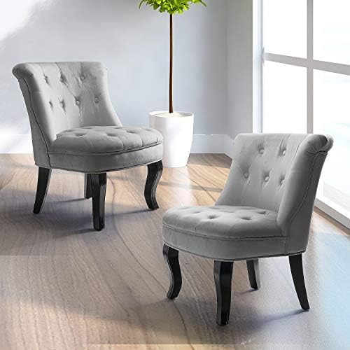 Amazon Com Modern Velvet Armless Accent Chairs Set Of 2 Upholstered Fabric Button Single Sofa Chair With Wooden Legs For Living Room Comfy Tufted Bedroom Chairs For Reading Dining Office Reception Light Gray Home Kitchen